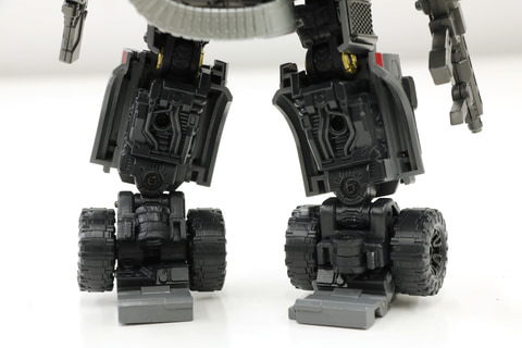 一方で、ロボットモードで比べると頭一つ分くらいの差に縮まります。これはトランスフォームの特徴によるものですが、ブラックアウトは折りたたむタイプの変形をし、アイアンハイドは展開するタイプの変形をするので、結果的にロボットモードでのサイズ差が縮まるのも面白い部分になるかと思います。