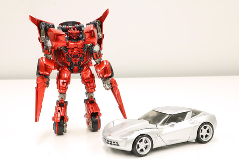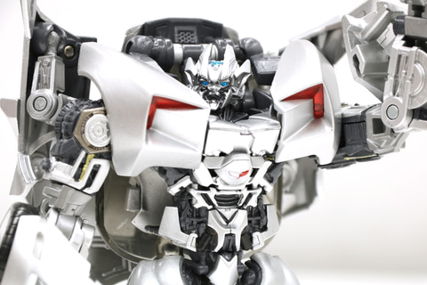 「サイドスワイプ」は実写映画『トランスフォーマー/リベンジ』に登場したオートボットの戦闘員。ロボットモードは白銀のボディでスピーディーかつ軽やかなアクションが印象的で、ビークルモードは「シボレー・コルベットスティングレイ コンセプトカー」となっている。