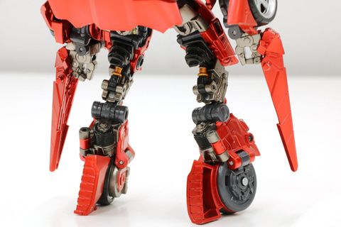 また、サイドスワイプは他のオートボットと異なり、膝が逆関節デザインになっています。そのため、膝を大きく可動できるように設計上工夫をしております。