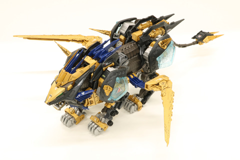 今回ライオン型ゾイド「ライガーゼロ」の特徴である「チェンジング・アーマー・システム(CAS)」からガイロス帝国軍が開発したイクスユニットを装備した「ライガーゼロ イクス」が登場。