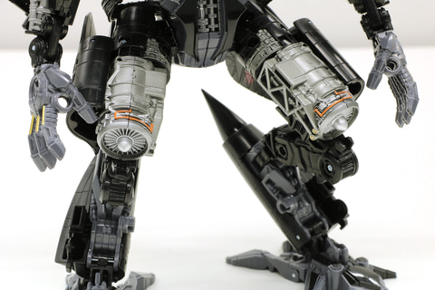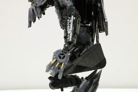 天野氏:ビークルモードの後部、ロボットモードの足の裏ですね。「SS-25 オプティマスプライム」ではグレーの成型色でしたが、今回は黒の成型色に打ち替えて、表面を銀で塗装しています。