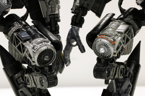 今回、そこを黒くすることによって、あくまで“ジェットファイヤーのパーツの一部分”に見えるように工夫しました。ここの黒は合体モード優先で、セット商品だからこそできる彩色となっています。