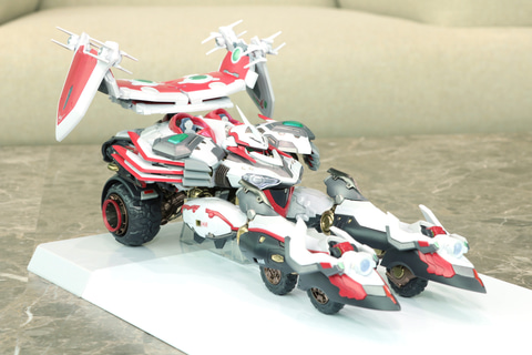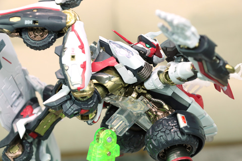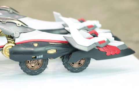 企画担当者:ビークルモードの新形態が入った経緯としましては、はじめ私たちはスタイリッシュなレーシングカーみたいなイメージだったのですが、京田監督から「レーシングカーではなく、もっと大きい装甲車みたいなボリュームです」と頂いて…。大変失礼しました、と感じた次第で…。