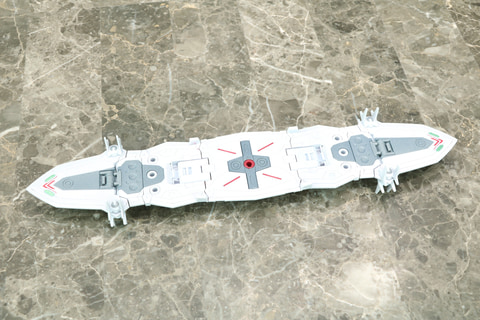 特に最近、しっかりと工場スタッフとやり取りをして吟味することで、成型色でも透明度を抑えたり、ソリッドな感じの質感を再現できるようになった事、また本商品では変形やリフボードの着脱や、リフによるダイナミックなアクションもありますので、遊びやすさも意識して、白や黒を意図的に成型色とした形になっています。