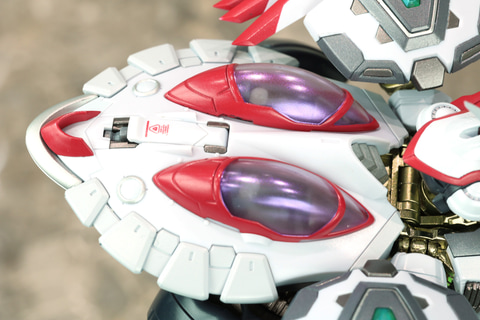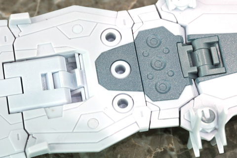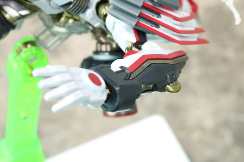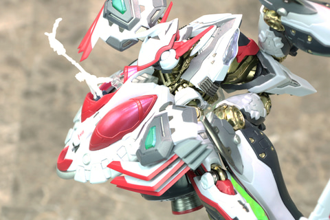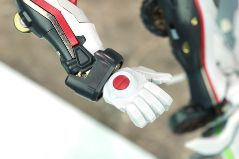 企画担当者:彩色に関しては今回、玩具としてフレーム部の合金感を高めたい、と考えて、装甲部には意図的に成型色を使用しています。ベースの黒い部分、白い部分などに取り入れています。