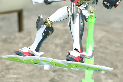 一つはスタンドパーツをリフボード側ではなくて本体を支える形をとりました。やはり、リフボードを使用したトリックを決めるポーズを取るときに、リフボードはむしろ上であったり、横であったり、なるべく自由な姿で飾れる方がよいとなりました。