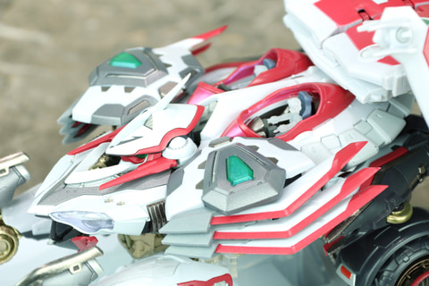 これもビークルモードになった時に、エアロパーツ的な空気を整流するようなイメージと伺っていて、そういった面でも単に形状だけでなく、機能を考慮した、河森さんらしいアイデアなのだな、と感じています。