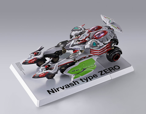 「ニルヴァーシュ type ZERO」は、アニメのヒロイン、エウレカと主人公レントン・サーストンが搭乗するLFO。作中のすべてのLFOの起源となった機体であり、スマートな手足に白を基調に赤のラインが施され、頭部のカメラアイは瞳のようなデザインとなっている。