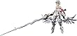 特徴的な前垂れパーツに彩色済みPVCを採用。スカート前面には見た目重視の"幅広"、可動重視の"幅短"の2種が用意され、独自のスカート可動により腿の動きを遮らない構造を実現している。全長約400mm(クリアパーツ含む)の「大槍」は、大剣への変形機構を内蔵。付属物として「盾」、「腰部マウントユニット」「剣(×2)」、「短剣」が付属し様々なシチュエーションを演出できるほか、未武装状態への換装も可能となっている。