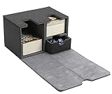 本商品は、トレーディングカードゲームの各種カードを約200枚収納できるデッキケース。スタンダードサイズ、スモールサイズはもちろん、スリーブに入れたままでも収納できる。ダイスやマーカー、ダメカンなどが入れられる引き出し付き。