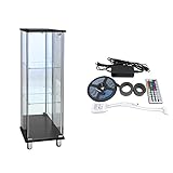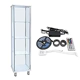 ガラスコレクションケース「JONY」の幅40cm、高さ130cm、背面ミラータイプ本体にLEDセットが付属する。