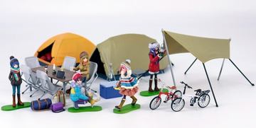 「志摩リンのスクーター」は完全新規造形で、風をよけるシールドの他、キャリアに積まれたキャンプギアなども再現。「土岐綾乃のミニバイク」は新規に金型を追加し再現度を高めている。両製品にはヘルメットも付属する。