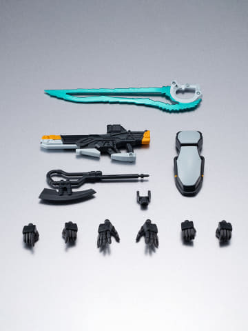可動域と遊びやすさが追求され、肩の広い可動域により印象的なポーズを再現できる。付属品にはヒート・ホークやビーム・ライフル、ビーム・サーベル、シールドが付属し、交換用手首パーツ左右各3種もついてくる。