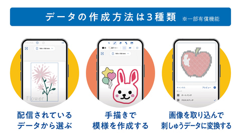 【刺しゅうデータの作成方法は3種類から選択可能】