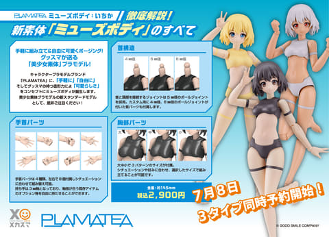 美少女素体プラモデルの新スタンダードモデル「PLAMATEA ミューズボディ:いちか」3タイプが7月8日12時より予約開始