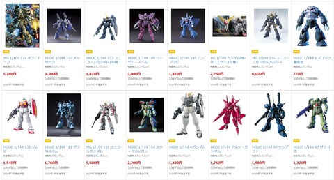 今回抽選の対象となる商品は、「MG 1/100 175 サザビーver.Ka」「RG 1/144 Hi-νガンダム」「HGUC 1/144 104 スタークジェガン」「HGUC 1/144 157 メッサーラ」「HGUC 1/144 145 ハンブラビ」「MGSD ガンダムバルバトス」など、様々なガンプラ商品がラインナップ。