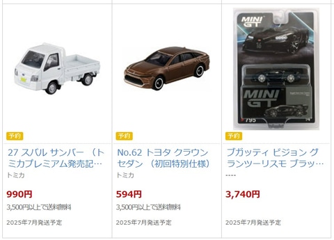 その他には、美少女プラモデルより「PUNI☆MOFU トゥ」「ソフィエラ」「Figure-rise Standard SEED ラクス・クライン」などもラインナップしているほか、「GR スープラ GT4 EVO トミカ55周年記念仕様」「No.62 トヨタ クラウン セダン (初回特別仕様)」のミニカーや、東京マルイのガスガン「G17 Gen5 MOS」なども抽選販売の対象となっている。