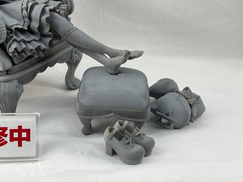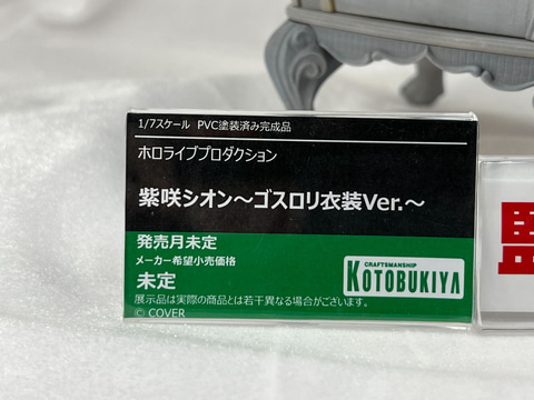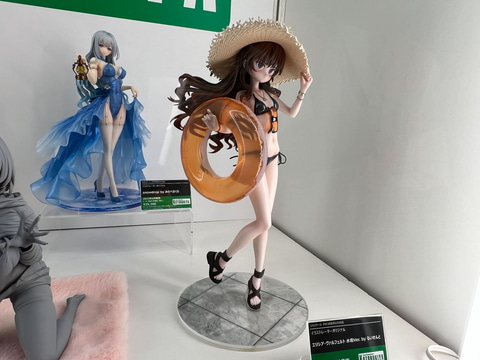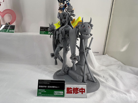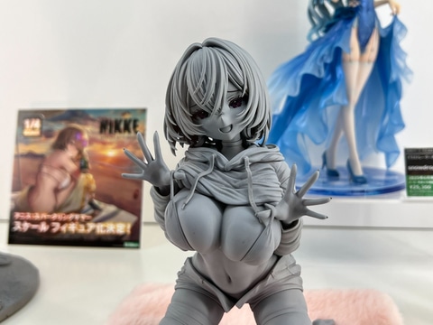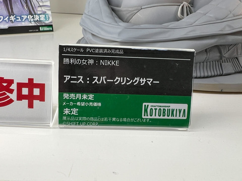 今回イベント会場のあみあみブースにて設置されたコトブキヤ展示エリアにて、「勝利の女神:NIKKE」から1/4スケールフィギュア「アニス:スパークリングサマー」の原型を展示しているほか、VTuberタレント事務所「ホロライブプロダクション」より、巫女衣装の「百鬼あやめさん」や、ゴスロリ衣装の「紫咲シオンさん」のフィギュア原型が展示されている。