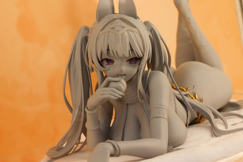 アルファマックスから発売予定の1/4スケールフィギュア「アズールレーン 筑摩 ~プレミアム・エクスチェンジ ver.~」の原型が展示されていた。こちらは、公式で描かれていた筑摩の着せ替えである「プレミアム・エクスチェンジ」のイラストを元に再現されたものだ。
