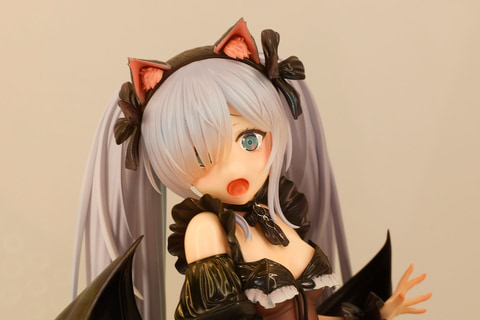 ハロウィンの季節らしく、コウモリの羽根が生えているなど小悪魔っぽい衣装になっているところがかわいらしい。お腹周りは若干透けて見える素材になっているが、そちらもしっかり再現されている。ダメージが入った黒いタイツや、ジェーナスに寄り添う2匹の黒猫など再現度もかなり高めだ。