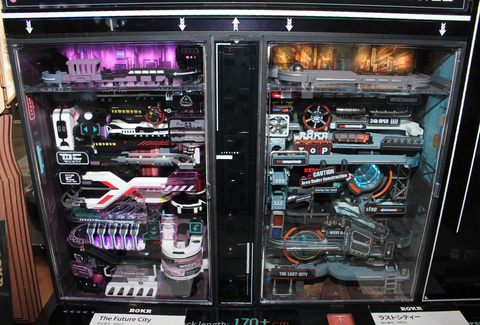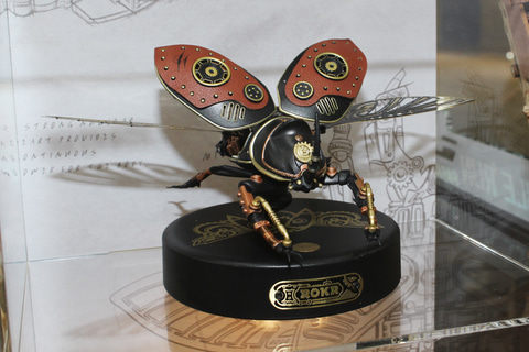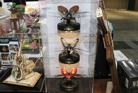 木製でなく、プラスチックのキットもあり、虫を模した可動するメカ「機巧次元」や、四角い箱の中に作られた未来世界の中を金属ボールがジェットコースターのように転がっていく「並行世界」など、木製のモノとはひと味違った世界観のアイテムが揃っている。