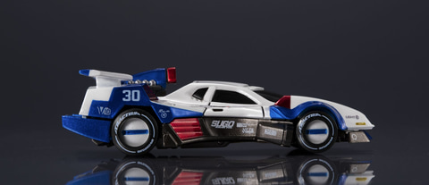 主人公「風見ハヤト」の相棒「アスラーダG.S.X」を約70mmで立体化。本商品では、実際のレーシングカーを髣髴とさせる細かいマーキングと、深みのある美麗な彩色が組み合わさり、小さいながらもリアリティと高級感を感じられる一品に仕上がっている。