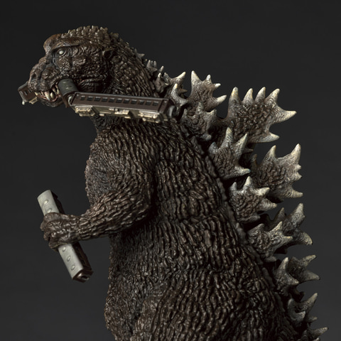 「ARTPLA SCULPTURE WORKS ゴジラ Re:イマジネーション」は原型を松村しのぶ氏が担当。1954年公開の「ゴジラ」の宣材用スチール写真を立脚点としながら、70年に渡る様々なゴジラのエッセンスを再構築・再創造。スーツやCGの再現でなく、太古の巨大生物が東京に現れた姿を立体で描き出している。