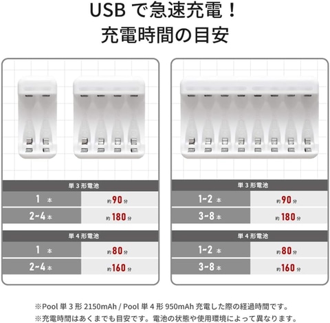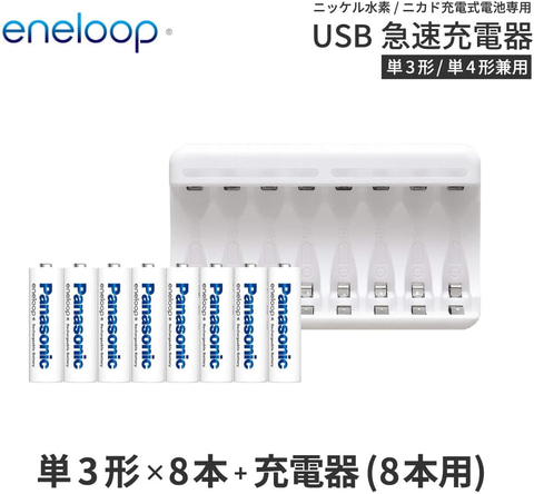 今回のセールでは、消費電力が大きい機器に適したハイエンドモデル「エネループ プロ」の単3形4本パックや、幅広い機器で使用できるスタンダードモデル「エネループ」の単4形8本とニッケル水素/ニカド充電式電池専用USB急速充電器(単3形/単4形兼用)のセットなどがお買い得になっている。