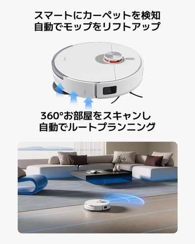 フラッグシップレベル6000Paファンブロワーの吸引力により、家中をスムーズに移動し、届きにくい床のすき間や隅、家具の下などからほこりや髪の毛を効率的に取り除く。180rpmの回転により、2つのモップがリビングルームやキッチンのコーヒー染み、汚れ、水滴などを効率的に除去し、床掃除のあらゆるニーズに応える。