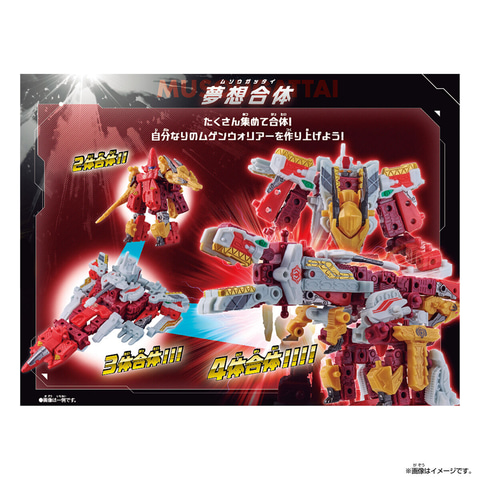 また「ムゲンタンク」「ムゲンドラゴ」「ムゲンジェット」「ムゲンガルダ」の限定カラー4体セットが封入された「ムゲンバインムソウ SPECIAL SET vol.1」も9月27日に発売を予定している。価格は4,180円。