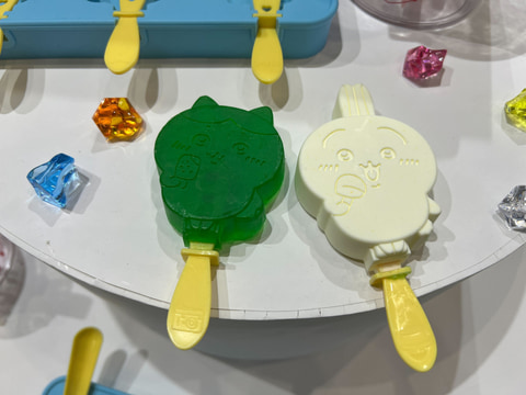 同社ブースでは、11月下旬に発売予定の「解体パズルLite 雪見だいふくパズル」が出展。ロッテのアイス「雪見だいふく」をモチーフに解体パズルとして商品化した同商品のサンプルを確認できる。また、10月中旬発売予定のクッキングトイ「ちいかわ むちゃうまスイーツバーづくり」も出展された。ちいかわ、ハチワレなどの6種類のキャラクター型で「ひえひえ!アイスバー」などを作れるクッキングトイだ。