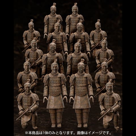 本商品は世界各国の様々なアートを立体化した「テーブル美術館」シリーズにて、古代中国で死者の墓に埋葬される人や馬をかたどった明器の一種「兵馬俑」がアクションフィギュア化。