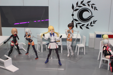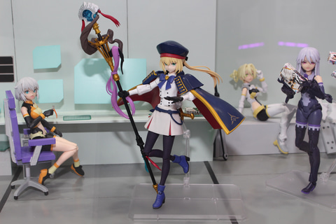 30MSのエリアは、シスター達の歴史に加えて、それぞれのデザイン画も展示。前日に発表された新作は10種類以上あり、「Fate/Grand Order」とのコラボアイテム「30MS キャスター/アルトリア・キャスター」は、発売中のシスター達と絡めたジオラマで展示されていた。