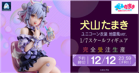 A・DIMENSIONは、フィギュア「のりプロ 犬山たまき ユニコーン衣装 地雷風ver.」を9月22日より予約受付を開始した。発売は2026年11月を予定し、価格は21,780円。