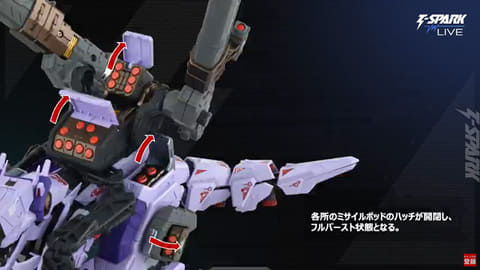 砲撃戦特化のヤクトユニットもサブアームがバックパックから伸び、フレキシブルにポージングが可能。核ミサイルポッドのハッチも開閉し、フルバースト状態にすることもできる。大型のハイブリッドヴぁりあぶるキャノンは前後に伸ばすことができる。