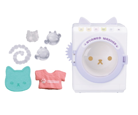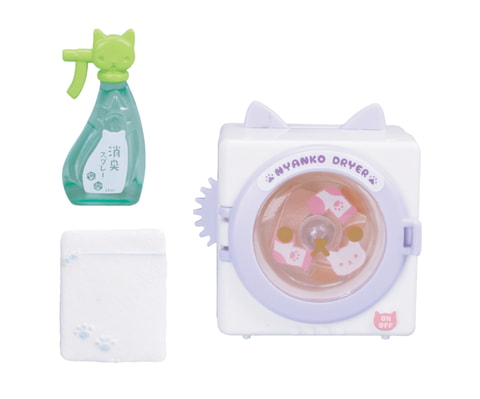 本商品は、猫のマークが付いた家電のミニチュア。洗濯機や乾燥機、ロケット掃除機などが揃っている。