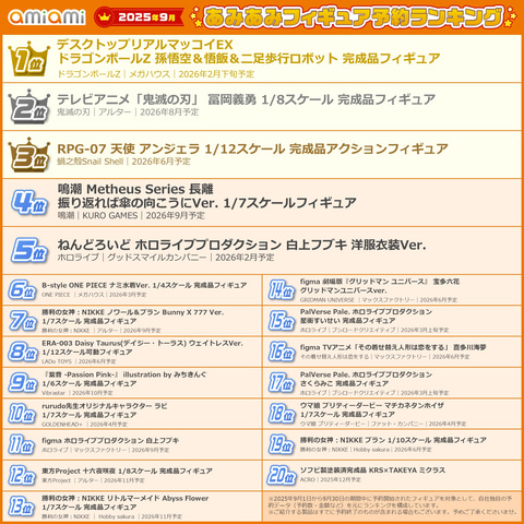 - 【あみあみ 2025年9月のフィギュア予約ランキング】