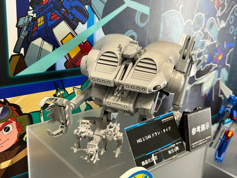 今回イベント会場の同社ブースでは、アニメ「戦闘メカ ザブングル」より「HG 1/144 ドラン・タイプ」「HG 1/144 ザブングル・タイプ」「HG 1/144 ブラッカリィ・タイプ」、「重戦機エルガイム」より「HG 1/144 オージ[スペシャルコーティング]」「重戦機エルガイムセット3」、「装甲騎兵ボトムズ」より「HG ブルーティッシュドッグ」のプラモデルを展示している。