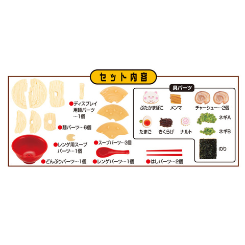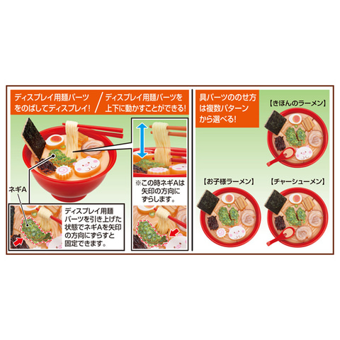 解体パズルLiteは食べ物モチーフの立体パズルシリーズ。どんぶりに6個の麺パーツと3個のスープパーツ、その他15パーツを選んで正しく組み合わせるとラーメンが完成する。本商品では麺パーツをのばした状態でディスプレイしたり、具パーツの乗せ方は複数パターンから選べる。「きほんのラーメン」、「お子様ラーメン」、「チャーシューメン」が作成可能。