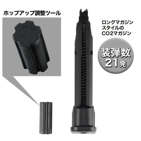 - 装弾数:6mmBB弾 21発(21連ロングスタイルのCO2マガジン)