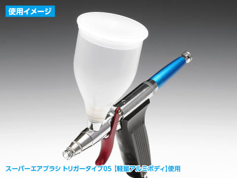 本製品は「スーパーエアブラシ トリガータイプ(軽量アルミボディ)」各種と「スーパーエアブラシ コンパクト(軽量アルミボディ)」に対応する塗料カップ。大容量で、エアブラシとの接続部にはテフロン製Oリングを装着することでラッカー系溶剤への耐久性も備えるという。