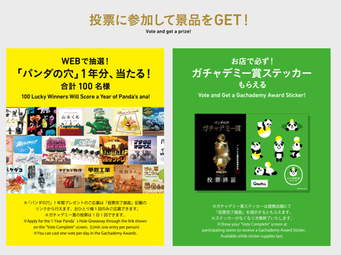 タカラトミーアーツ、「パンダの穴」ガチャデミー賞の投票を11月1日よりスタート