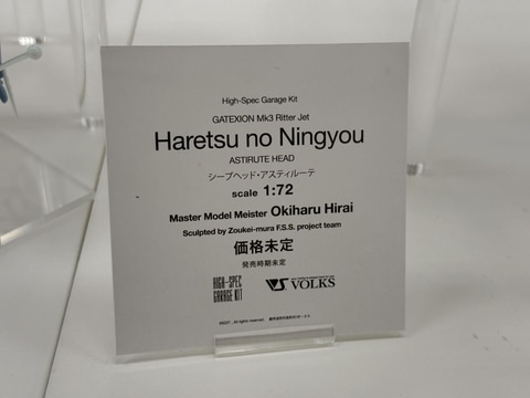 ※イベントで展示された完成品は、別商品の「HSGK 1/72 ゲートシオンマーク3 リッタージェット・破烈の人形 (ホークヘッド)」(イベント限定品、82,500円)となり、「HSGK 1/72 ゲートシオンマーク3 リッタージェット・破烈の人形(シープヘッド・アスティルーテ/静)」は本品の頭部に代わり、本品の隣(足元)に展示されていた頭部2種が付属する商品となります。