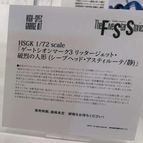 「ファイブスター物語」より「HSGK 1/72 ゲートシオンマーク3 リッタージェット・破烈の人形(シープヘッド・アスティルーテ/静)」が展示!【#ホビーラウンド33】