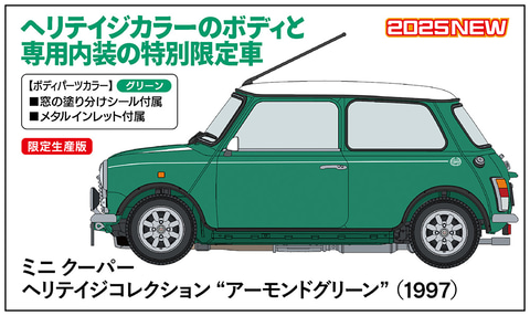 ハセガワ、プラモデル「ミニ クーパー ヘリテイジコレクション “アーモンドグリーン” (1997)」本日出荷開始!