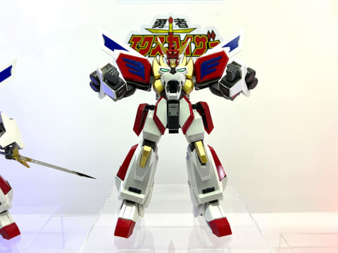 本製品は「勇者エクスカイザー」に登場する「キングエクスカイザー」を立体化したもの。「カイザーソード」や指を差す手の他、「エクスカイザー」を収納する合体シーケンスを再現する姿も確認できる。