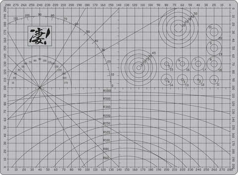 方眼:280×200mmに加え、角度を示す線やカーブ線など、カットの目安に役立つデザインとなっている。