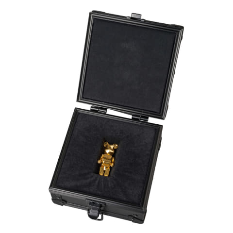 本製品は先進的なプロジェクトを展開する「fragment」のプロデュースによって2017年に生まれた「POLYGON BE@RBRICK」を純金(K24)で立体化したもの。「POLYGON BE@RBRICK」は従来のBE@RBRICKが曲線的な柔らかさを持つのに対し、多面体で研ぎ澄まされたエッジによって新たな表現をもたらしたという。