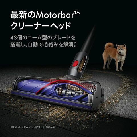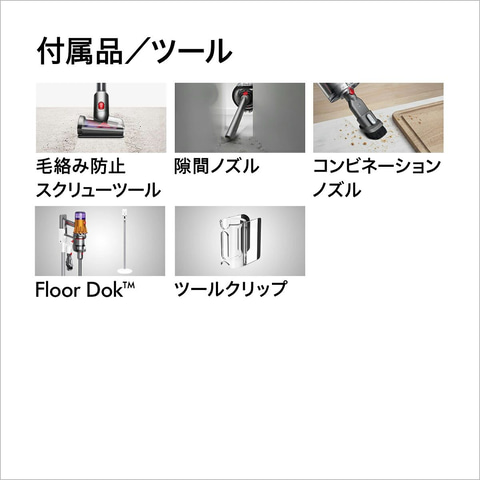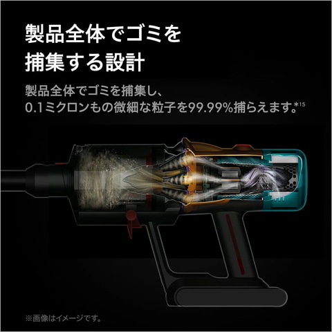 本製品は、パワフルで小型なDyson Hyperdymiumモーターを搭載。毎分最大125,000回転して、パワフルな吸引力を生み出ししっかりと掃除できる。また、高密度の7セルリチウムイオンバッテリーが最長60分の安定した電力を提供する。