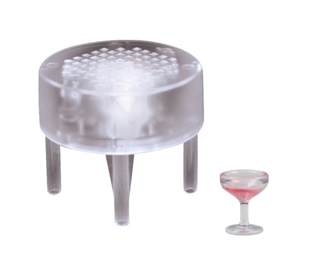 本商品は、シャンパンタワーをモチーフとしたカプセルトイ。ボトルにギミックが付いているほか、レインボータイプのテーブルは光の色が順番に変化する仕様になっている。